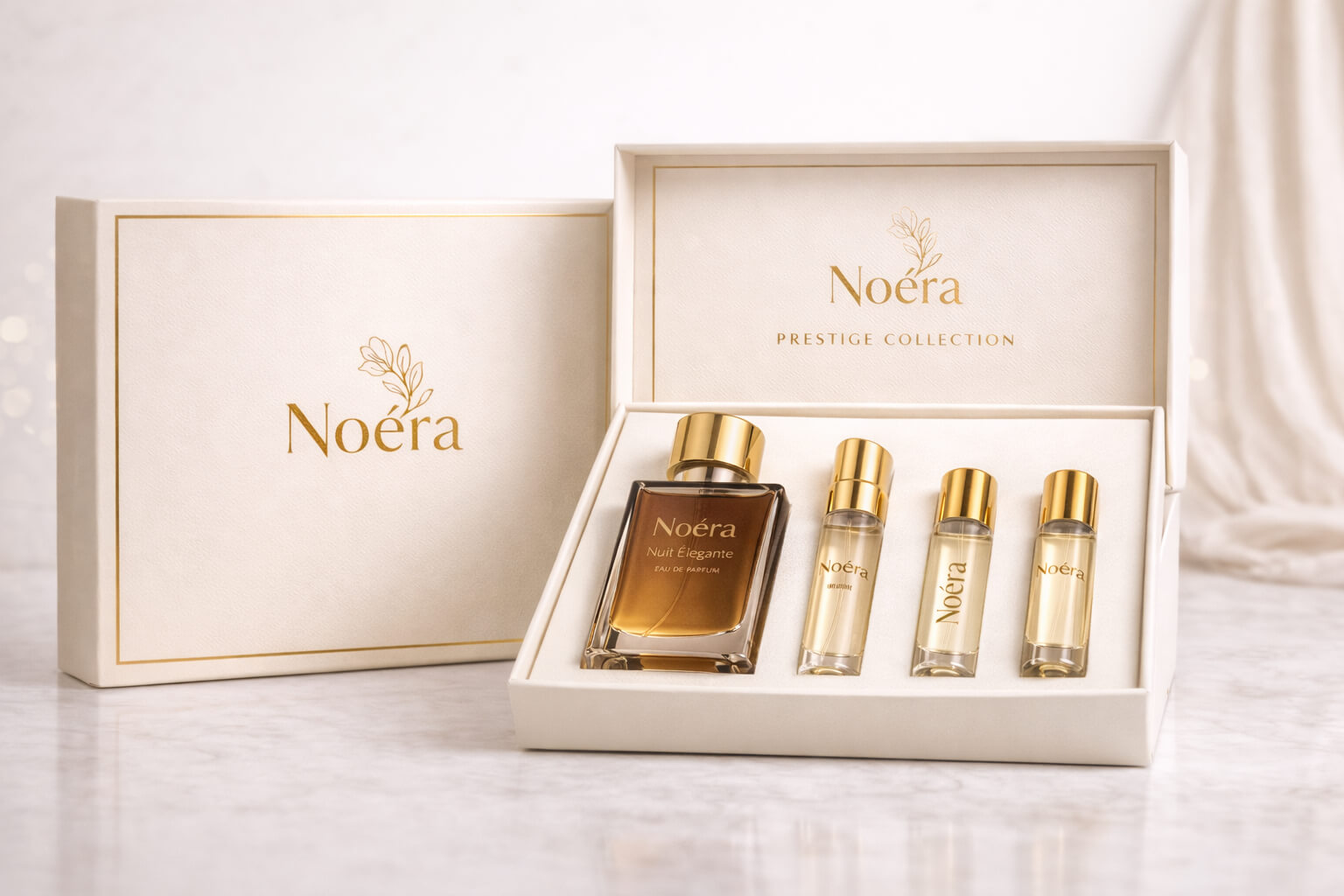 Noéra is rooted in a vision of femininity that is sophisticated, confident, and multi-dimensional. We celebrate women who are graceful yet powerful, understated yet unforgettable. Our aesthetic draws from timeless beauty, contemporary design, and the emotional richness of fragrance itself.